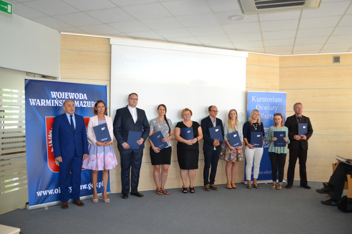 Podczas uroczystości, która odbyła się 22 sierpnia 2018 r. w Urzędzie Wojewódzkim w Olsztynie, Warmińsko-Mazurski Wicekurator Oświaty Wojciech Cybulski wręczył nauczycielom decyzje o nadaniu stopnia awansu zawodowego nauczyciela dyplomowanego. Kolejnych 433 nauczycieli w województwie warmińsko-mazurskim dołączyło do grona nauczycieli dyplomowanych. Gratulując nauczycielom zdobycia kolejnego stopnia awansu zawodowego, Warmińsko-Mazurski Wicekurator Oświaty podkreślił znaczenie istotnej roli nauczycieli w rozwoju dzieci i młodzieży oraz kształtowaniu ich postaw. W wydarzeniu uczestniczyli także dyrektorzy szkół oraz rodziny awansowanych nauczycieli. Uroczystość prowadziła Mirosława Gralla-Kaperzyńska – dyrektor Wydziału Administracyjno-Prawnego Kuratorium Oświaty w Olsztynie. Podobne wydarzenia odbędą się 28 sierpnia br. w Elblągu i 29 sierpnia br. w Ełku.