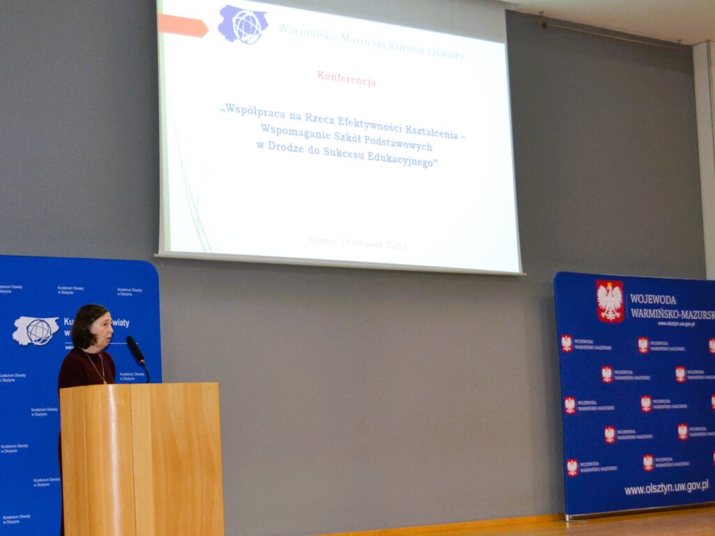 14 listopada 2025 r. w Warmińsko-Mazurskim Urzędzie Wojewódzkim w Olsztynie odbyła się konferencja pn. „Współpraca na Rzecz Efektywności Kształcenia – Wspomaganie Szkół Podstawowych w Drodze do Sukcesu Edukacyjnego”, zorganizowana przez Warmińsko-Mazurskiego Kuratora Oświaty.