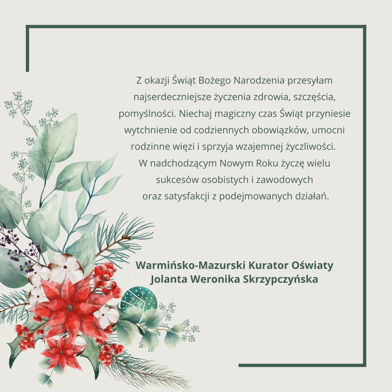 Z okazji Świąt Bożego Narodzenia przesyłam najserdeczniejsze życzenia zdrowia, szczęścia, pomyślności.