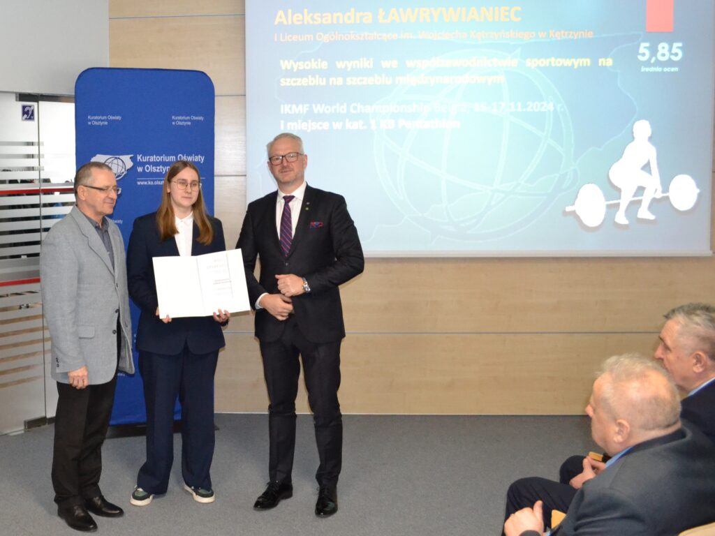 6 lutego 2026 r. w Warmińsko-Mazurskim Urzędzie Wojewódzkim w Olsztynie odbyła się uroczystość wręczenia dyplomów stypendystom Ministra Edukacji za wybitne osiągnięcia edukacyjne w roku szkolnym 2024/2025. Spośród złożonych 50 wniosków przyznano stypendium 18 uczniom i absolwentom z województwa warmińsko-mazurskiego za wybitne osiągnięcia naukowe lub sportowe.